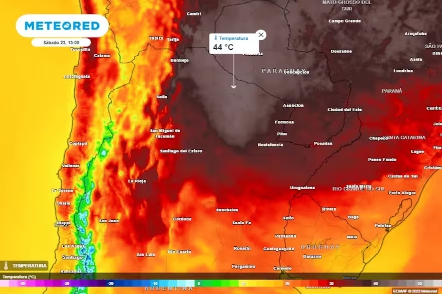 Los especialistas indican que la ola de calor que tendrá lugar este fin de semana en el norte argentino no será un hecho aislado a nivel nacional, sino que afectará a parte parte de Sudamérica, con temperaturas extremas también en Paraguay y el sur de Brasil. Las marcas que se registrarán el sábado y durante parte importante del domingo serán fomentadas por el viento norte y se ubicarán cerca de los valores más altos de temperatura observados en esta época del año.