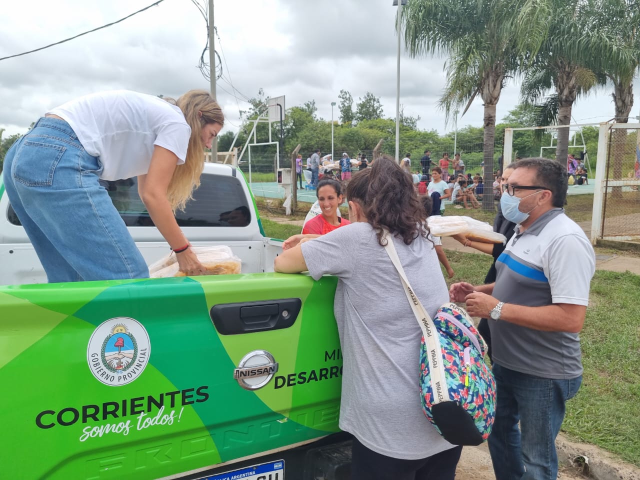 En total, se entregaron 3600 viandas (almuerzo y cenas) aportadas por la empresa Shonko S.A., que fueron distribuidas en la Escuela N°34 de las Mil Viviendas y N° 275 de Laguna Seca, los Centros de Promoción Comunitaria (CPC) de los barrios Paloma de la Paz y San Jorge.