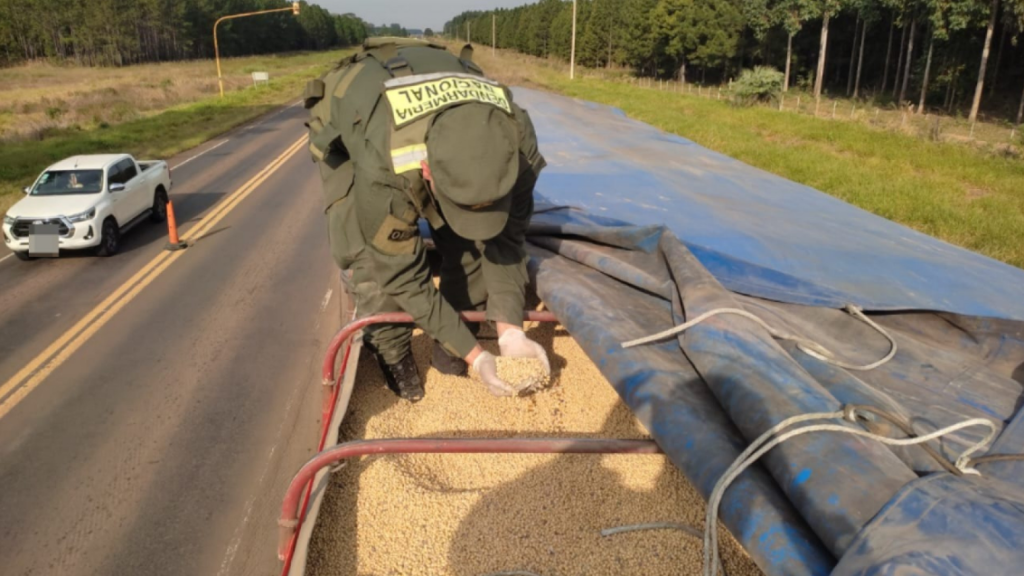 En un operativo de prevención vial montado sobre las rutas nacionales Nº12 y Nº14, la Gendarmería Nacional demoró el avance de cuatro camiones con una carga ilegal de 116.000 kilos de soja.