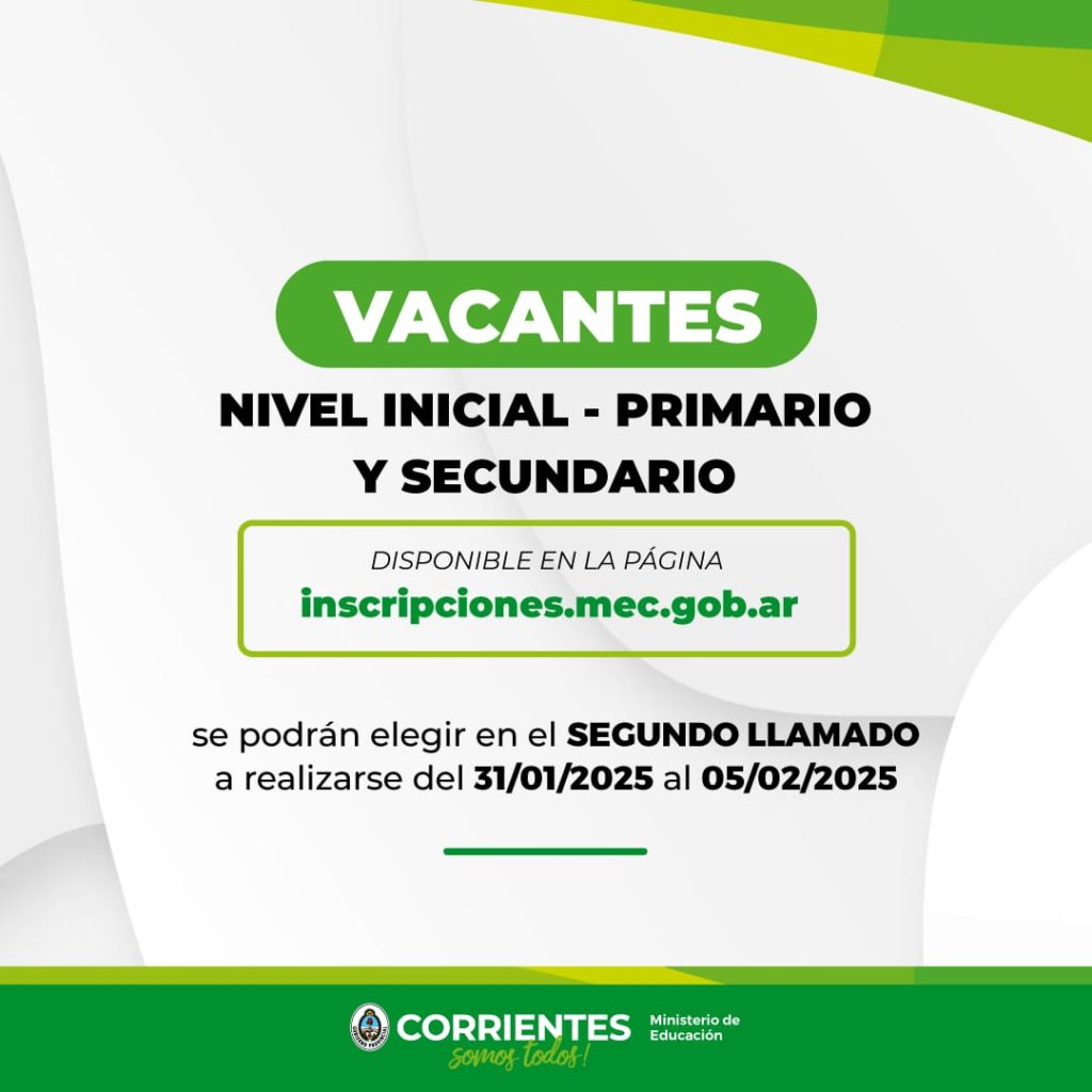 El Ministerio de Educación informa que el segundo período de inscripciones para el ciclo lectivo 2025 se habilitará desde el 31 de enero al 5 de febrero de 2025, para todos los niveles educativos.