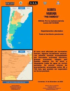 El COE comunicó un Alerta Naranja para toda la provincia