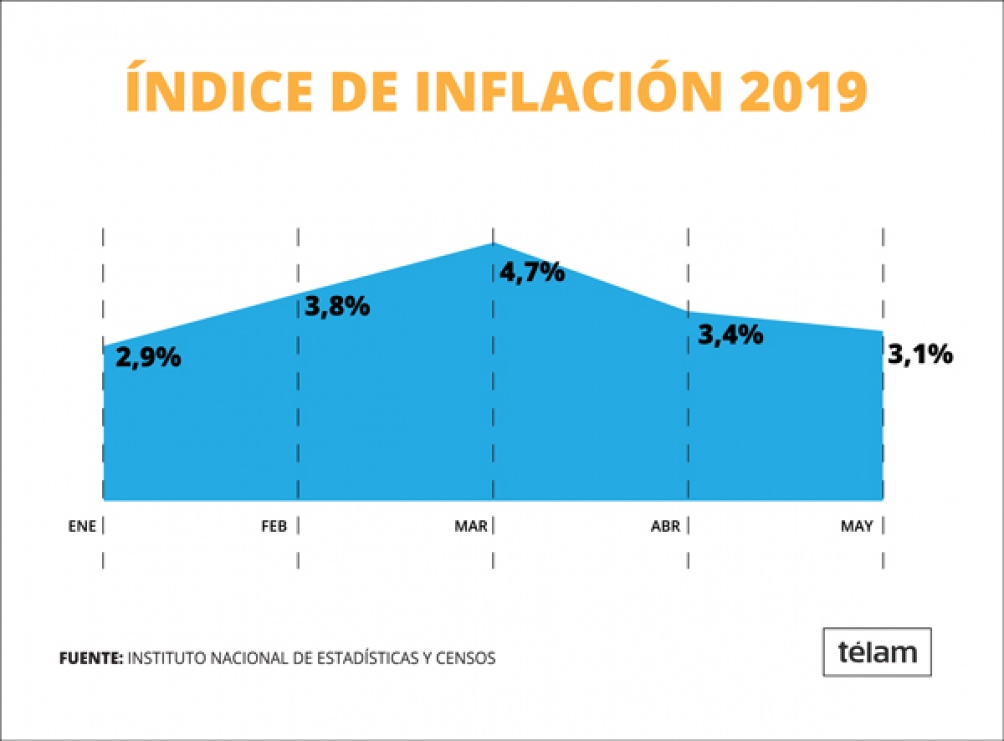 El Índice de Precios al Consumidor aumentó 3,1% en mayo, en línea con lo que estimaban las consultoras, por debajo del 3,4% de abril y el 4,7% de marzo, informó hoy el Instituto Nacional de Estadística y Censos (Indec)