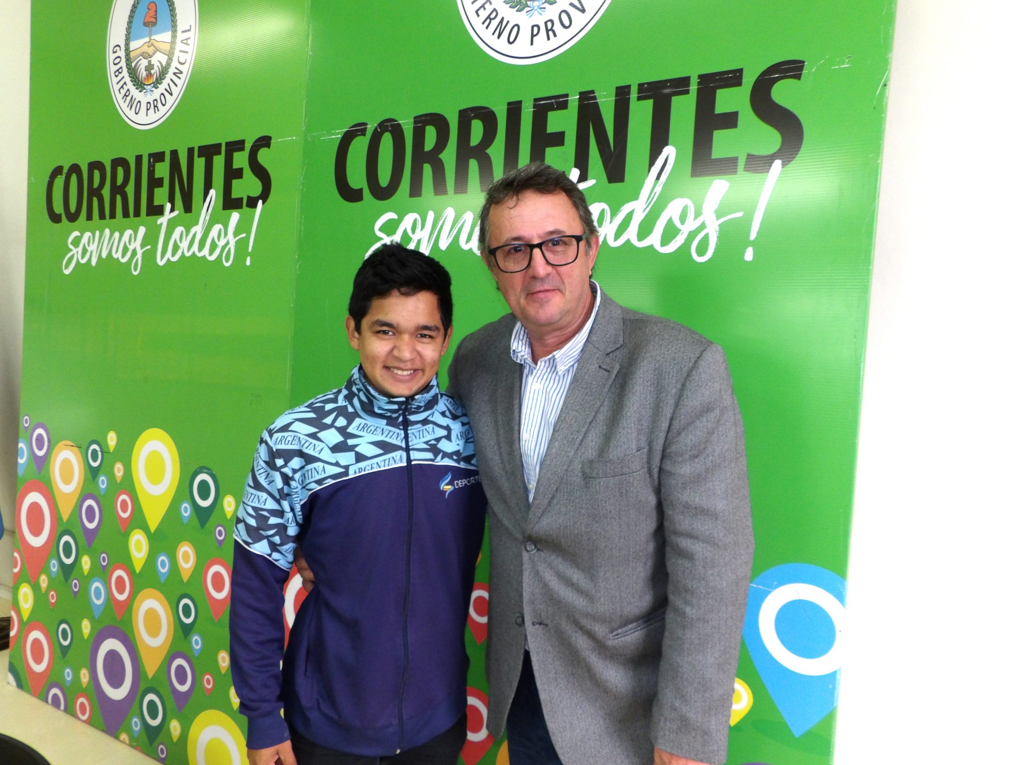 Representando a “Corrientes Pesas” del Colegio Secundario Manuel Vicente Figuerero, Leyes junto a sus entrenadores Marcelo Fernández y Mónica Morales, agradecieron el fuerte respaldo del Gobernador Gustavo Valdés.