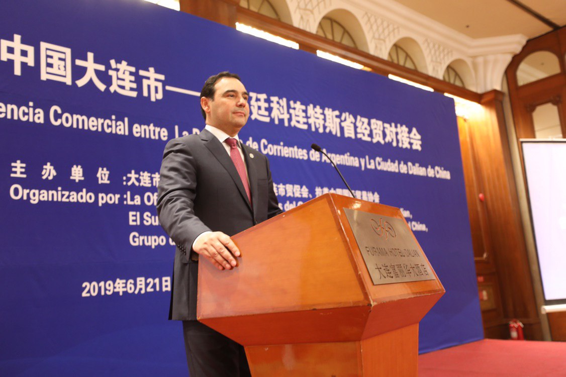 Como parte de su histórica visita al gigante asiático, el gobernador Gustavo Valdés encabezó la apertura de la Conferencia Comercial entre la provincia de Corrientes y la ciudad china de Dalián, donde intercambió experiencias junto a más de un centenar de empresarios internacionales en aéreas como la pesquera, la forestal y la agropecuaria para la concertación de proyectos a futuro. Asimismo, concordó convenios de cooperación para potenciar la actividad energética, como la solar, durante la jornada.