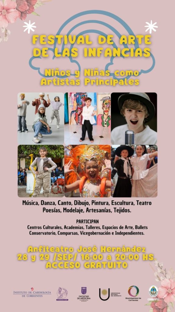 Con apoyo del Gobierno de Corrientes y el Municipio capitalino, comienza este sábado a las 16 la 1º edición del Festival de Arte de las Infancias, hasta el domingo a las 20 en el anfiteatro “José Hernández” con los cierres de cada jornada, respectivamente, de las comparsas Ará Berá y Sapucay.