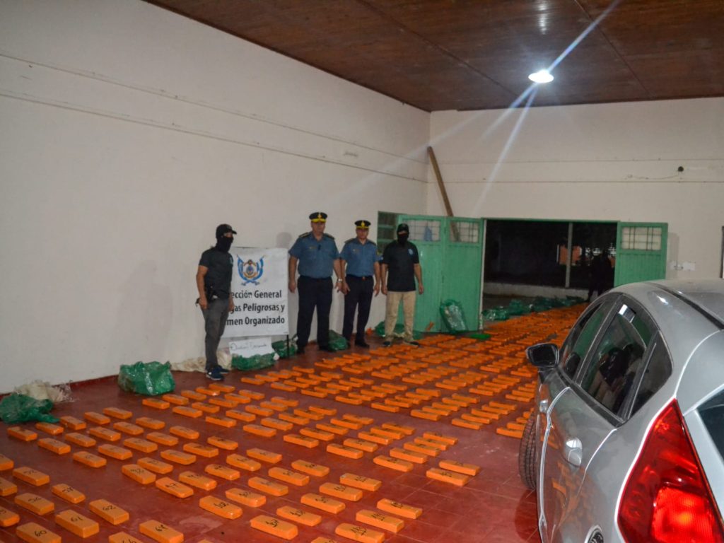 Se trata de un automóvil Ford Fiesta (registro pedido de secuestro de Bs As), cuyo conductor había abandonado el rodado tras la persecución, hasta que posteriormente y con la orden respectiva judicial se inspeccionó el vehículo bajo las formalidades legales, encontrándose en su interior 17 paquetes o bultos grandes que contenía dentro 654 panes o ladrillos de sustancia de origen vegetal compactada, que ante el test de orientación efectuada en la base del destacamento, finalmente resultó ser “marihuana”, totalizando el cargamento más de media tonelada de dicha sustancia.