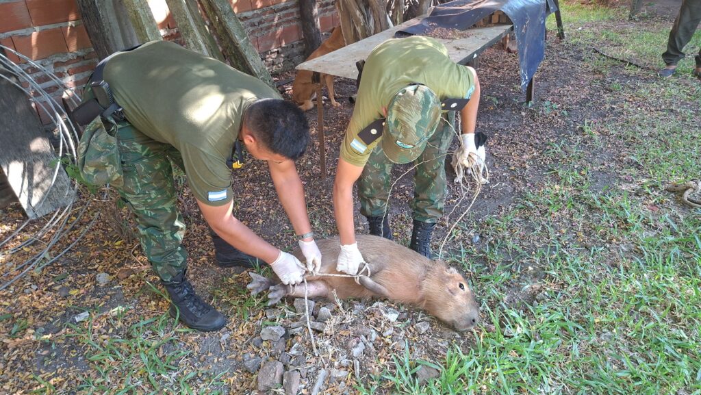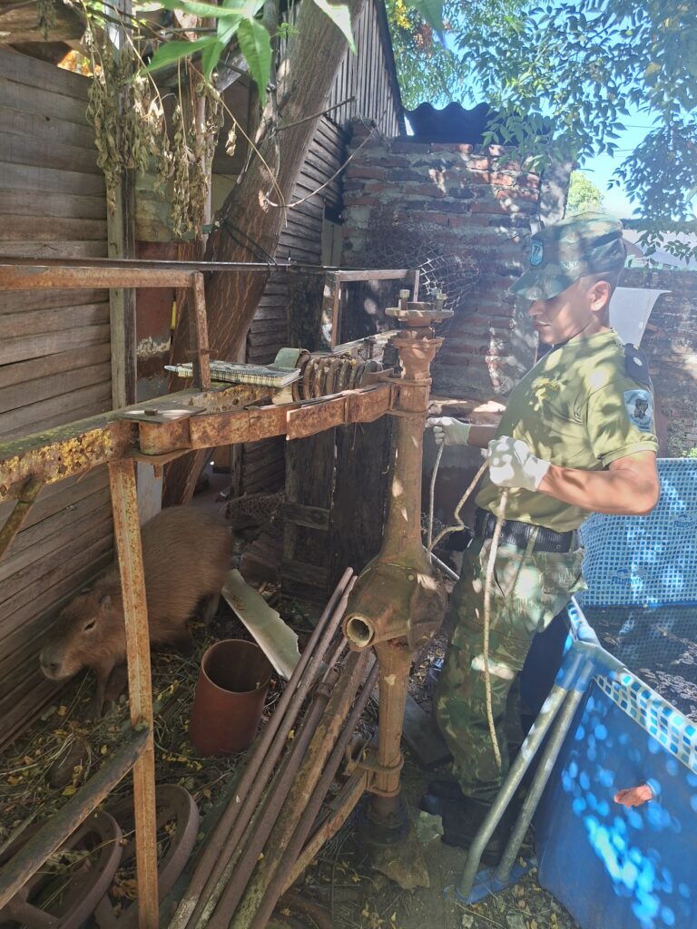 La Policía rescato a un carpincho que habría aparecido en el patio de un domicilio.