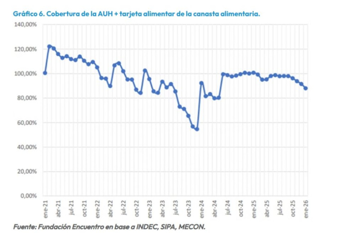 Desde junio de 2025 perdió diez puntos de cobertura de la canasta alimentaria individual. En términos interanuales, la prestación muestra una reducción real del 8%.