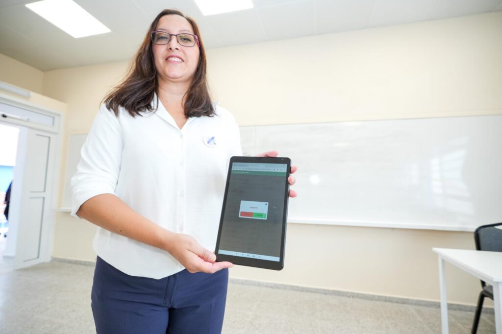 En el acto de inauguración del nuevo edificio de la escuela Juan Domingo Perón de la capital correntina la semana pasada, además de la entrega de 138 notebooks para los estudiantes, el gobernador y su equipo de gobierno otorgaron a ambos establecimientos 12 tablets, que servirán en adelante para que los preceptores y docentes tomen el registro de asistencia de manera virtual en una plataforma que notificará en el mismo momento a los padres y tutores de los alumnos su presencia en la escuela.