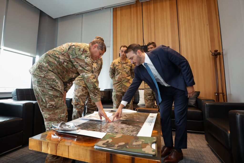 El gobernador de Corrientes, Juan Pablo Valdés recibió este miércoles en el Centro Administrativo de la capital provincial al Comandante de la Primera División de Ejército, General de Brigada Guillermo Mander y al Jefe del Batallón de Ingenieros Anfibios 121, Teniente Coronel Pablo Campi para analizar “en profundidad distintos aspectos territoriales, logísticos y técnicos” del proyecto del cruce de balsas entre Bella Vista – Villa Ocampo para unir de este modo a las provincias de Corrientes y Santa Fe, afirmando que este avance “será un hito estratégico para el desarrollo económico de la región”.